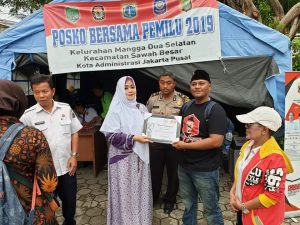 Fahira Idris juga mengucapkan, Selamat Bertugas kepada semua Pejuang Demokrasi dan semoga kita semakin baik kedepannya, untuk Lurah Mangga Dua, Polsek Sawah Besar, TNI, Satpol PP Sawah Besar, FKDM, Tokoh Masyarakat, para Saksi Partai Koalisi PKS – Gerindra – PAN – Demokrat dan Berkarya akan saya berikan Piagam Penghargaan Khusus karena telah sama-sama menjaga Proses Demokrasi lebih baik dan untuk Tim BPN Prabowo-Sandi tingkat Sawah Besar juga akan saya berikan Apresiasi Khusus.