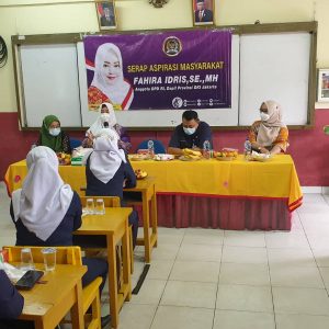 Jakarta – Fahira Idris Anggota DPD RI Dapil Provinsi DKI Jakarta mengunjungi Sekolah di Kalideres Jakarta Barat guna memberikan Piagam Penghargaan DPD RI kepada seluruh Bapak/Ibu Guru yang selama Pandemi Covid-19 berjuang terdepan menyelamatkan anak-anak bangsa dari Covid-19 dengan Belajar Jarak Jauh.