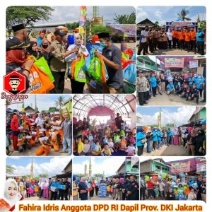 “Hari ini, kami membawa Bantuan untuk Korban Kebakaran, ada Alat Sekolah, Makan, Minuman, Perlengkapan Mandi, Bantal, Sembako, Paket Handsanitizer, Gayung, Ember, Gelas, Piring, Sendok, Perlengkapan Makan, Chiki, Pempers, Mie, Beras, dan tadi juga diberikan hadiah untuk Anak-anak Korban kebakaran, PPSU, BNPB, dan Warga Sekitar. Semoga rezeki dari para donatur semakin baik dan berkah. Bangga dan apresiasi Bang Japar Jaktim yang menghimpun dan membeli bantuan, luar biasa Bang Japar Jaktim. Terima kasih juga Bang Karunia Fitriadi dari Sahabat Gelora Indonesia yang sudah bersama-sama kelokasi kebakaran, teruskan kolaborasi bersama Bang Japar untuk kebaikan warga DKI Jakarta”, ujar Fahira Idris dalam keterangannya.