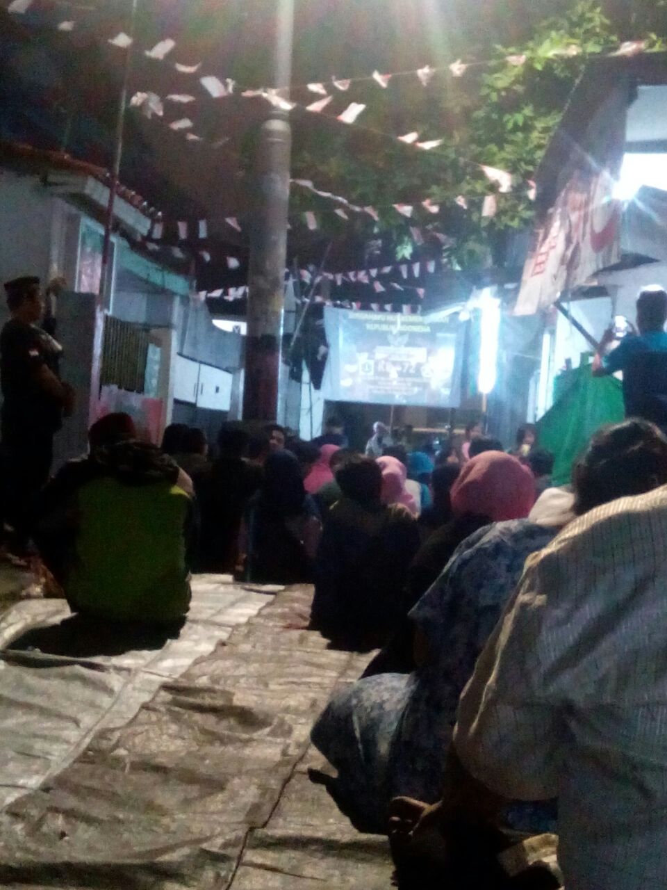 Jakarta – Sabtu Malam (19/8) kemerdekaan HUT RI Ke-72 tahun masih dirasakan warga Dwiwarna Gg. 4 RW 09 Jakarta Pusat, nampaknya selain dengan kegiatan Tasyakuran dengan berdoa kepada Allah swt, di selingi juga dengan penyerapan Ilmu agama lewat pencerahan agama oleh KH. Zainuddin Ali Ulama yang penuh inspirasi untuk anak muda, selain itu di lanjutkan dengan menonton Film Perjuangan guna meningkatkan semangat Patriot kemerdekaan. Di akhir kegiatan tersebut semua warga yang hadir bersantap makan bersama dengan Ngeliwet pakai nasi, daun pisang di gelar bersama-sama untuk meningkatkan kebersamaan diantara warga sekitar.